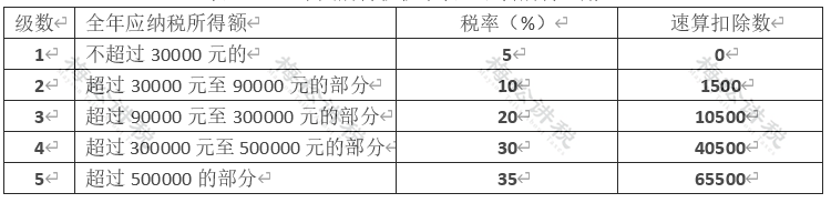 经营所得采用查账征收的,适用5-35%的五级累进税率,如下表所示: