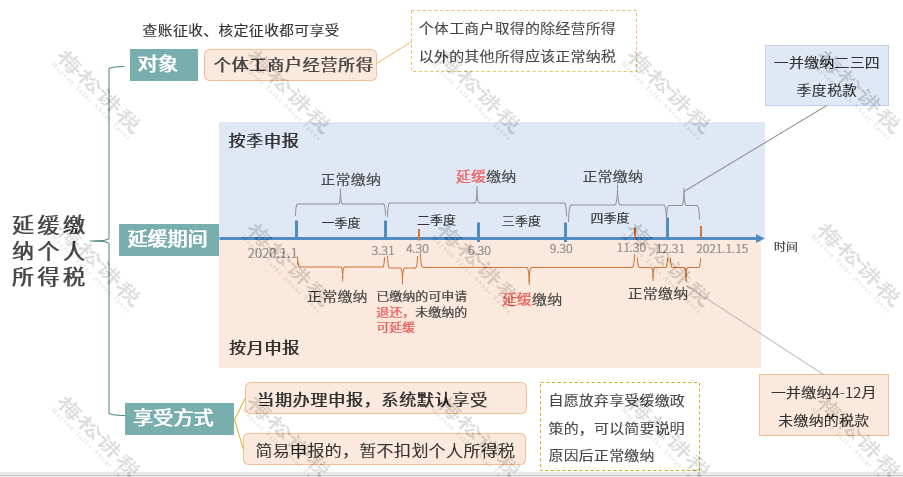 今年5月到年底,个体工商户暂缓缴纳个人所得税,延迟至明年1月申报期内一并缴纳。