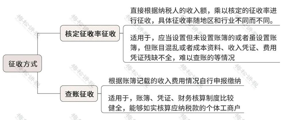 个体工商户按照经营所得缴纳个人所得税,征收方式又分为核定征收率征收和查账征收。